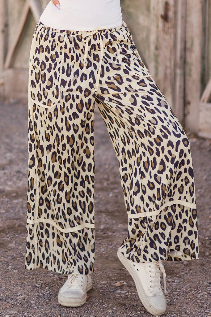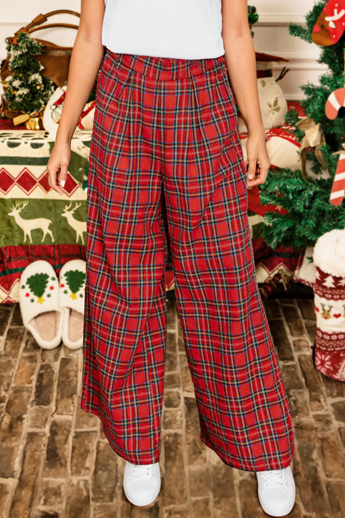 Fashion-W Christmas Festive Plaid Wide Leg Pull On Pants