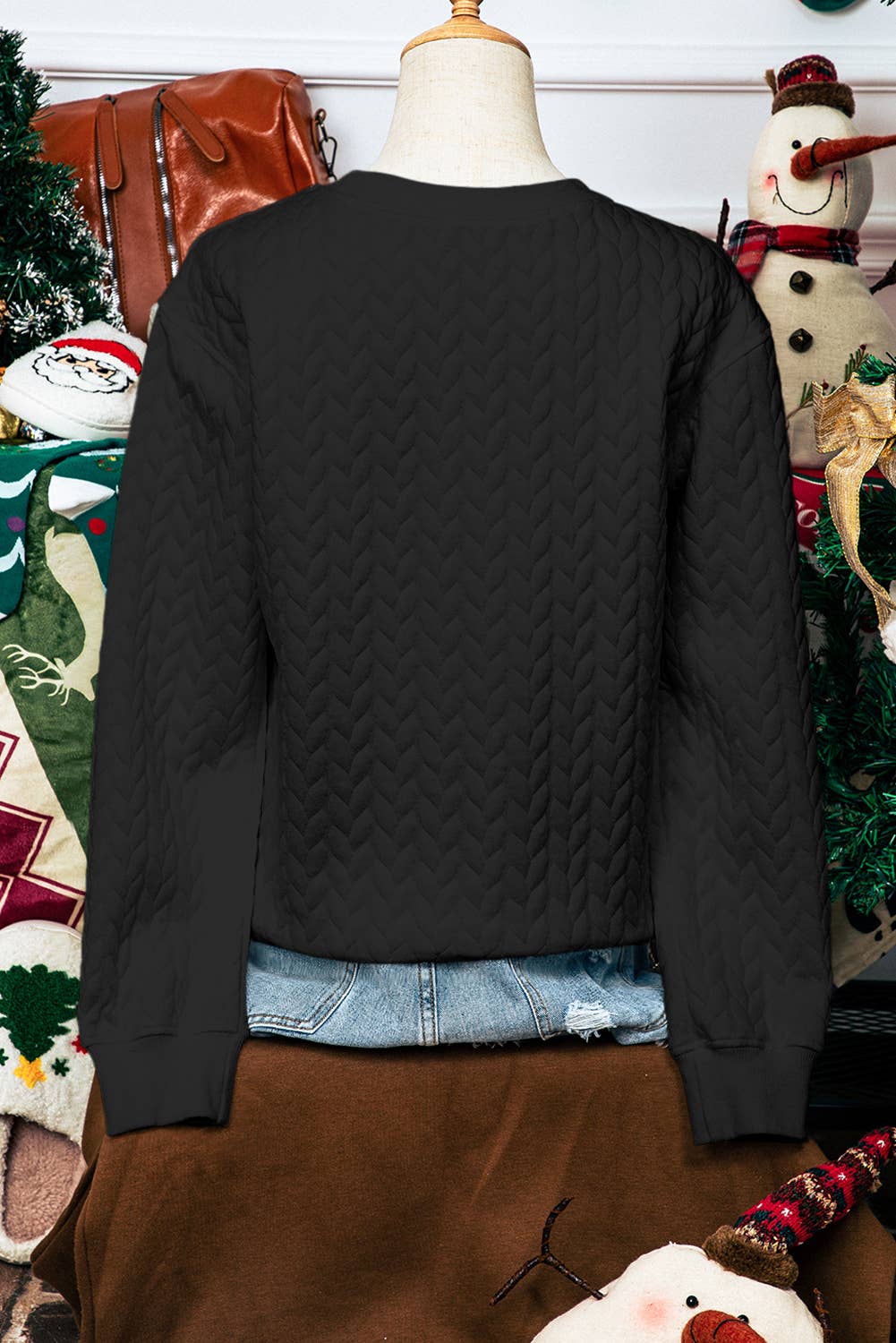 The cable knit pattern adds a touch of elegance to this casual pullover