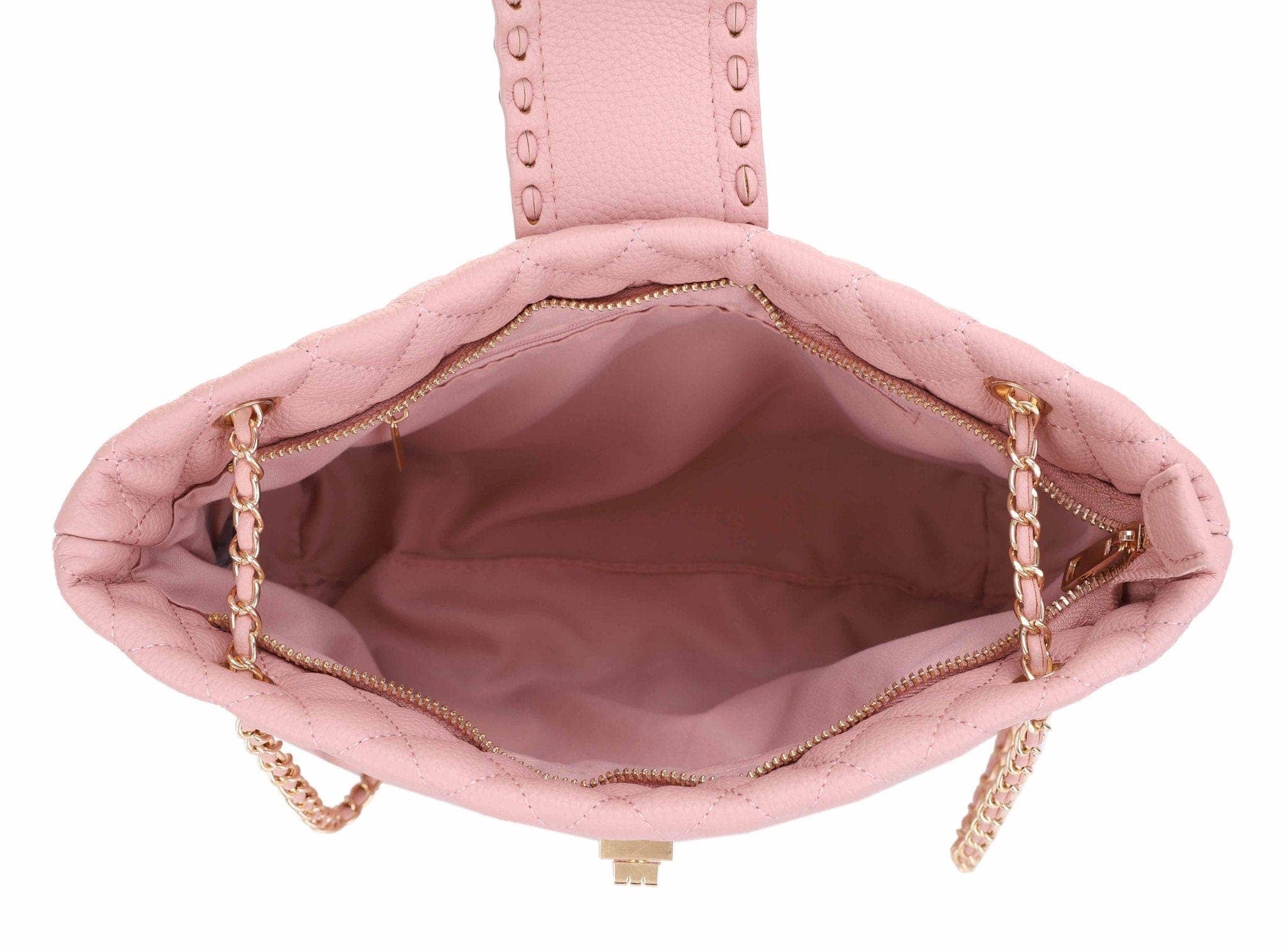 Carry your belongings in style with the EJ60187 Quilted Tote Bag! With an elegant and sophisticated design, this bag features a chain strap for easy and comfortable carrying. Perfect for any occasion, this bag adds a touch of class to your outfit.