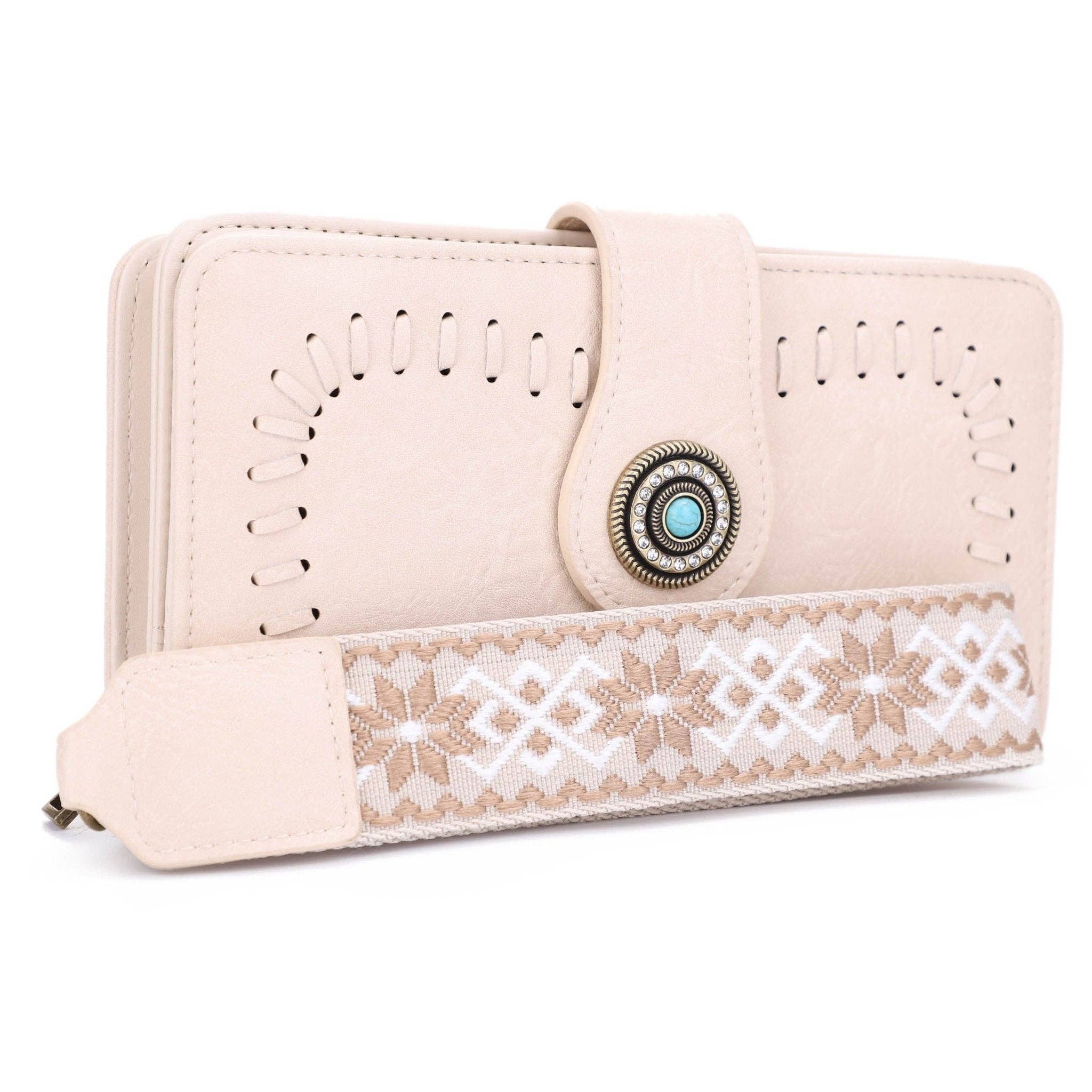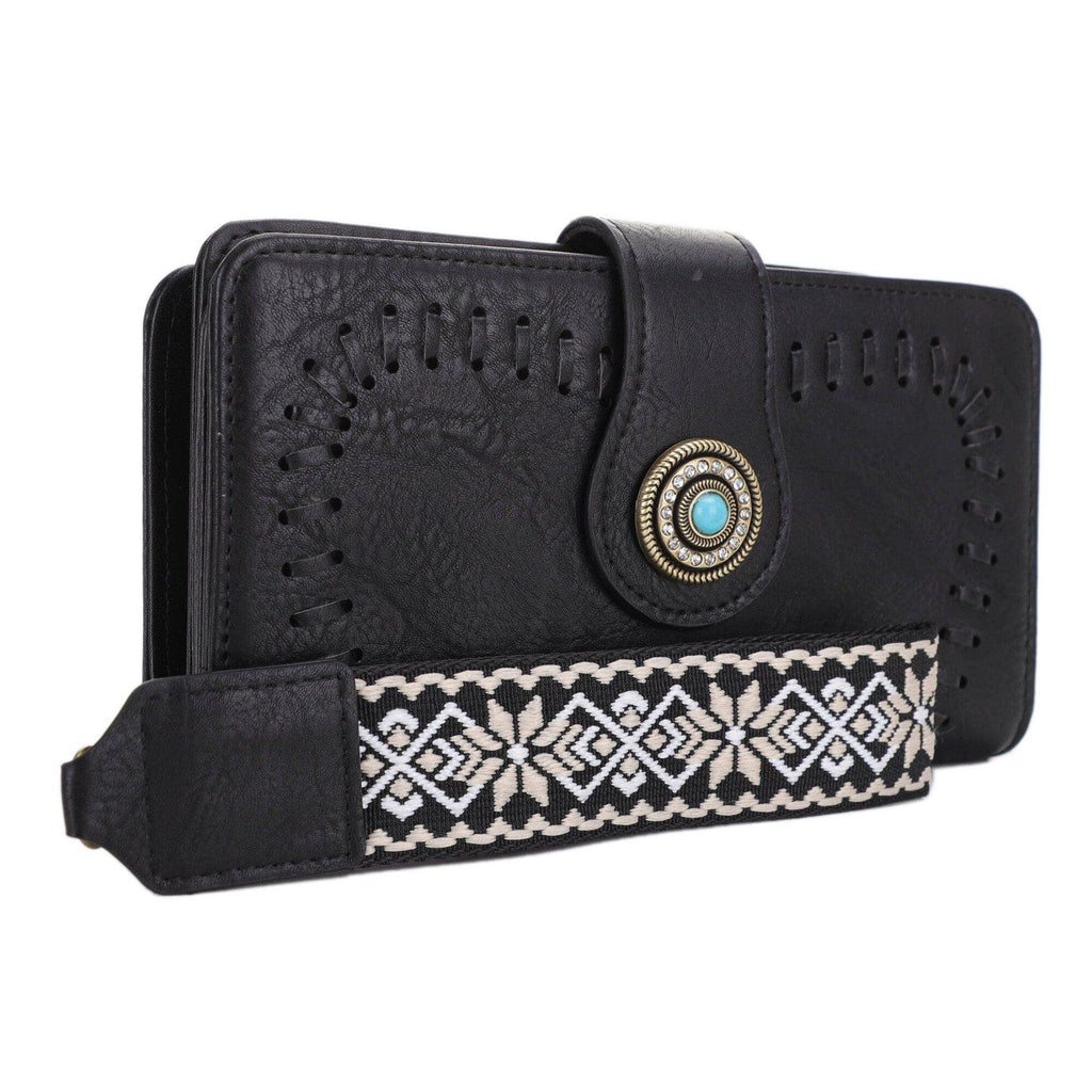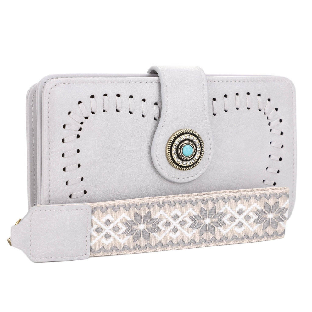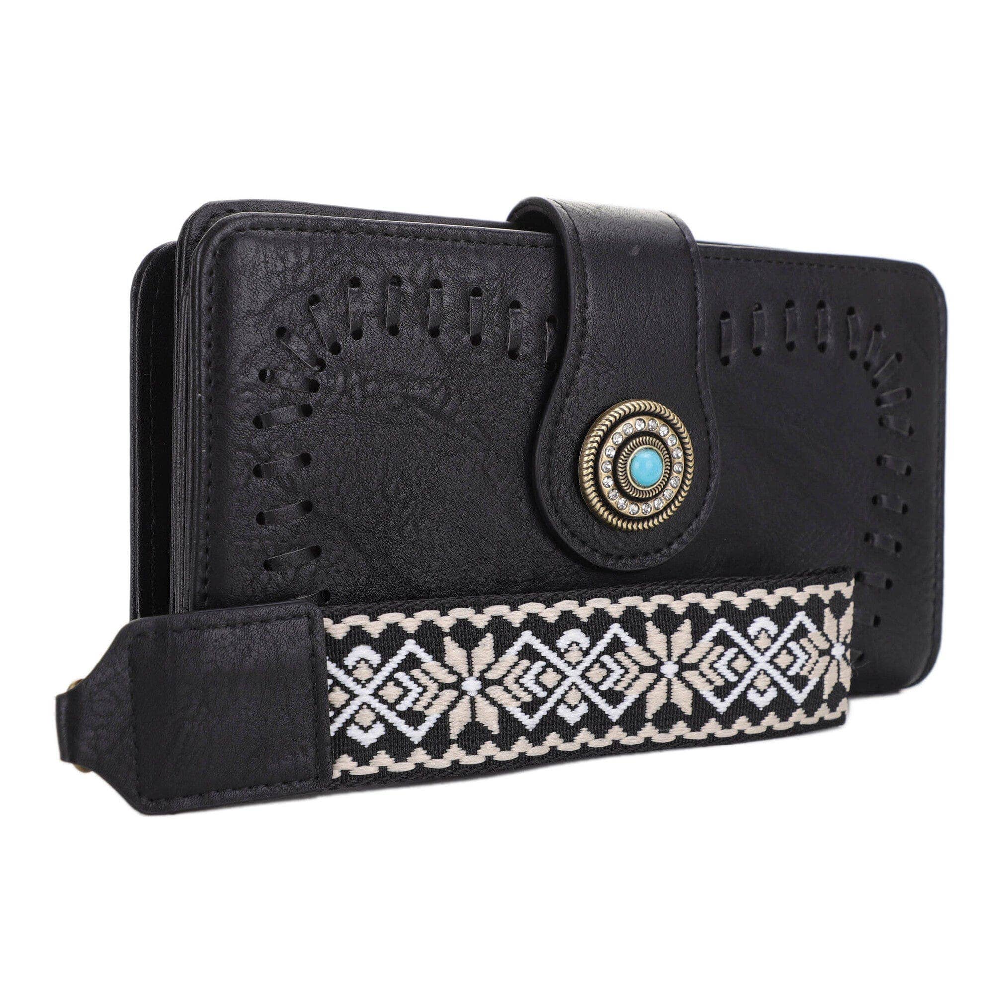 Make a statement with the ES60166 Dolly Western Wallet! With a detachable Boho wristlet strap and plenty of room for all your essentials, this wallet is both stylish and functional. No more struggling to fit everything in a tiny wallet - this one has got you covered!