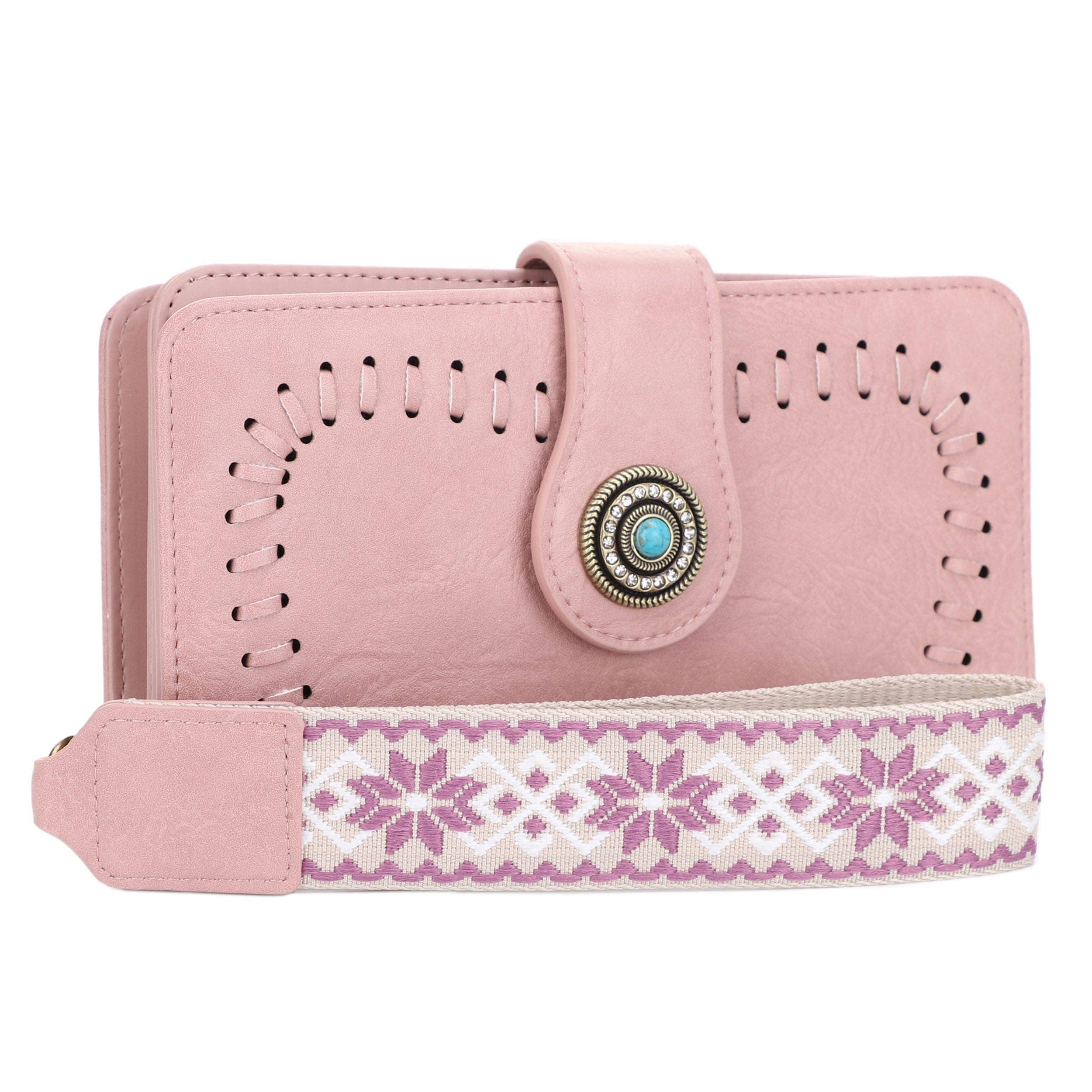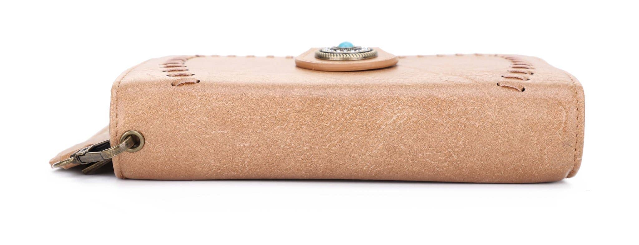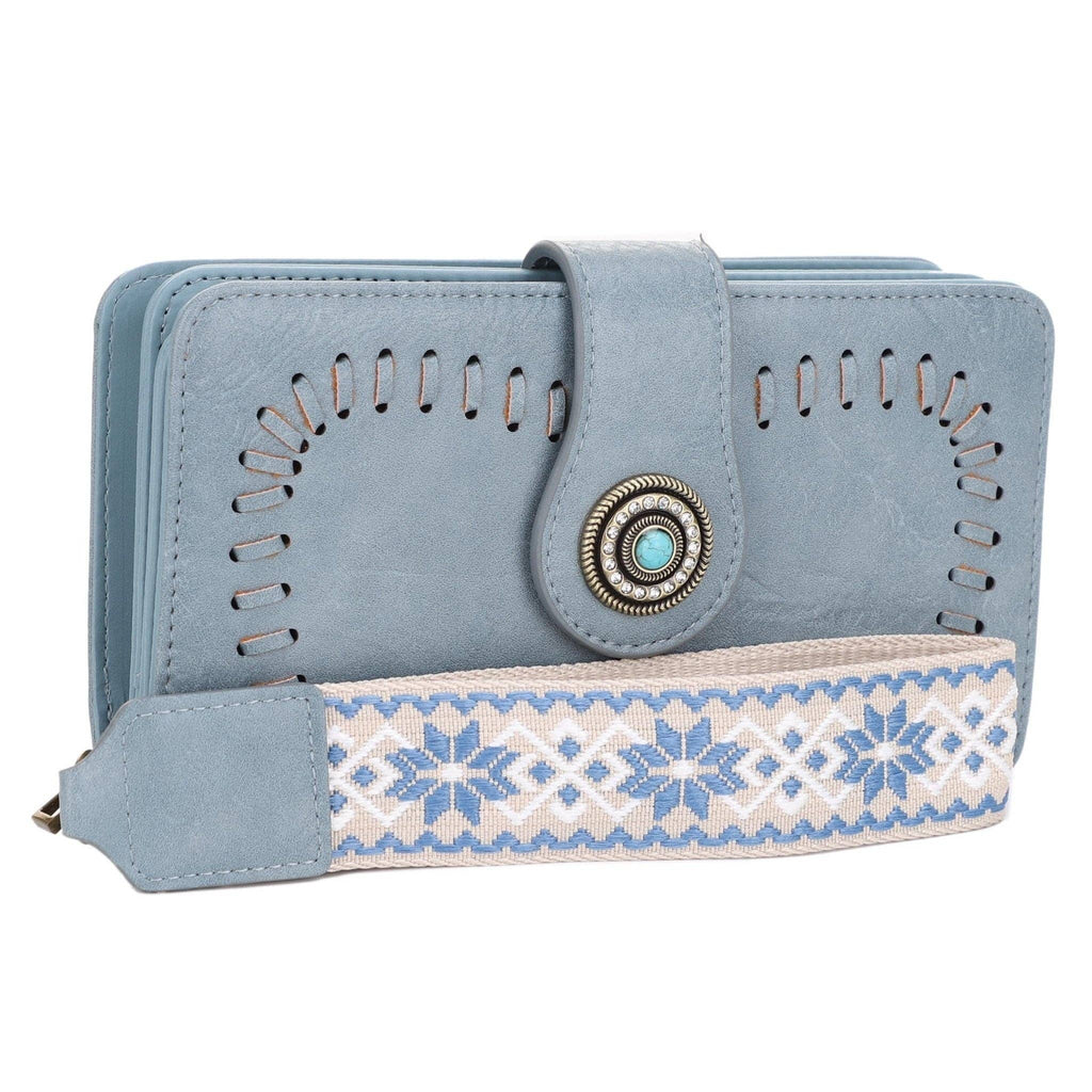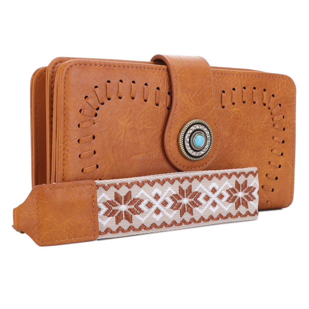 Make a statement with the ES60166 Dolly Western Wallet! With a detachable Boho wristlet strap and plenty of room for all your essentials, this wallet is both stylish and functional. No more struggling to fit everything in a tiny wallet - this one has got you covered!