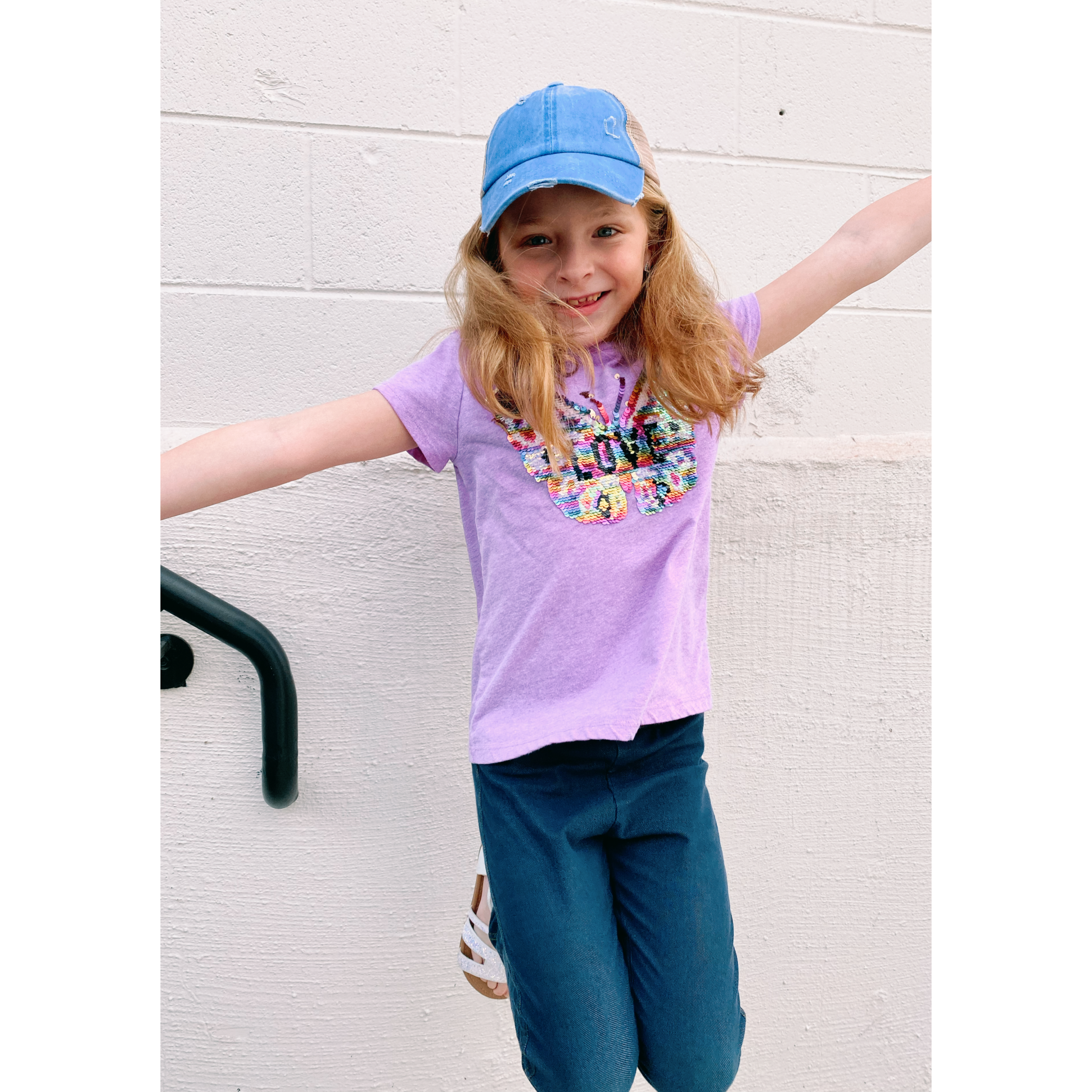 All New! Our KIDS distressed ball cap is sure to make your favorite little ones feel special, and with our most popular Criss-Cross back, it allows you to style your little one's hair at different levels to suit their personality! Even better, they can match mom!
