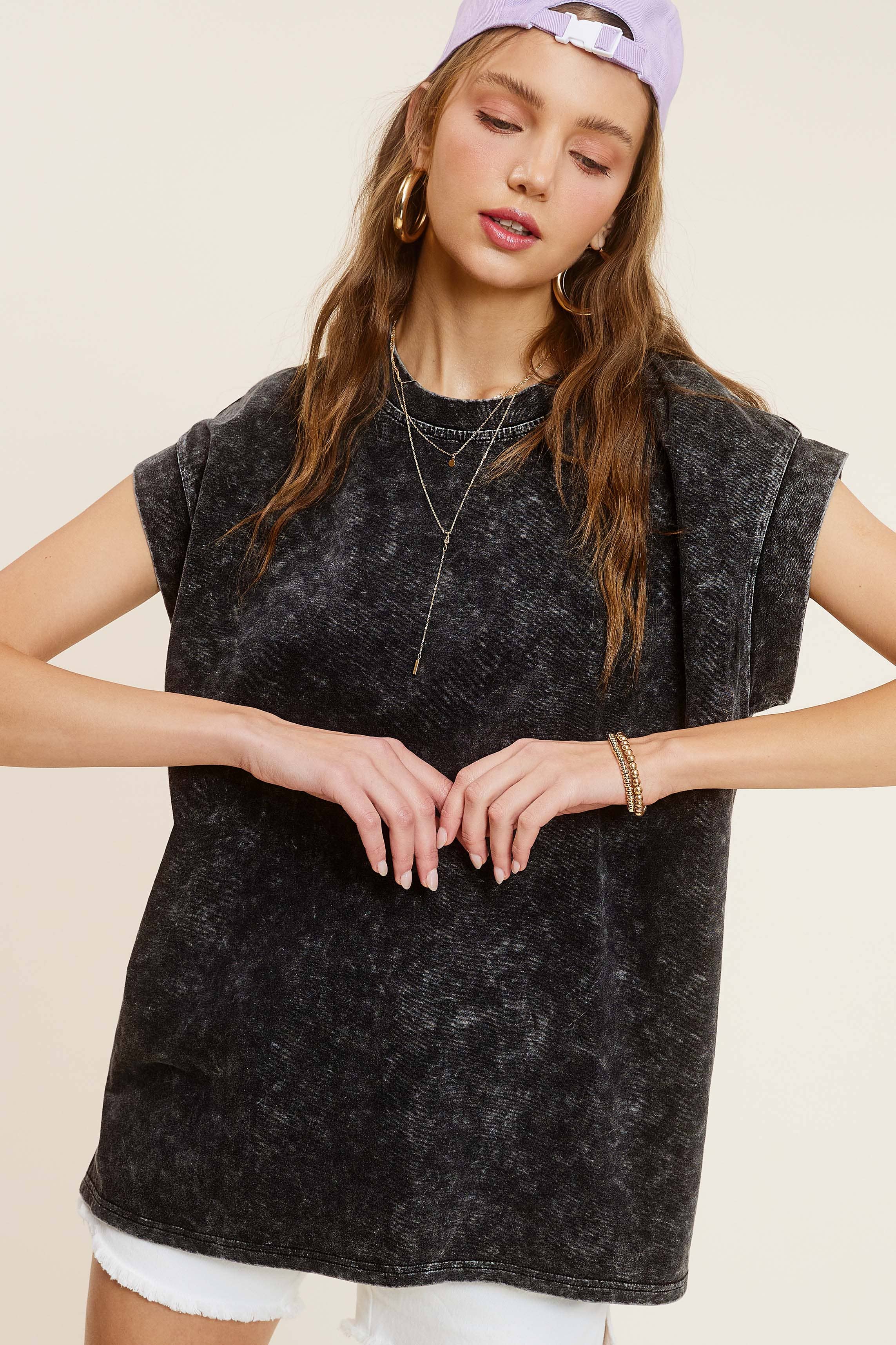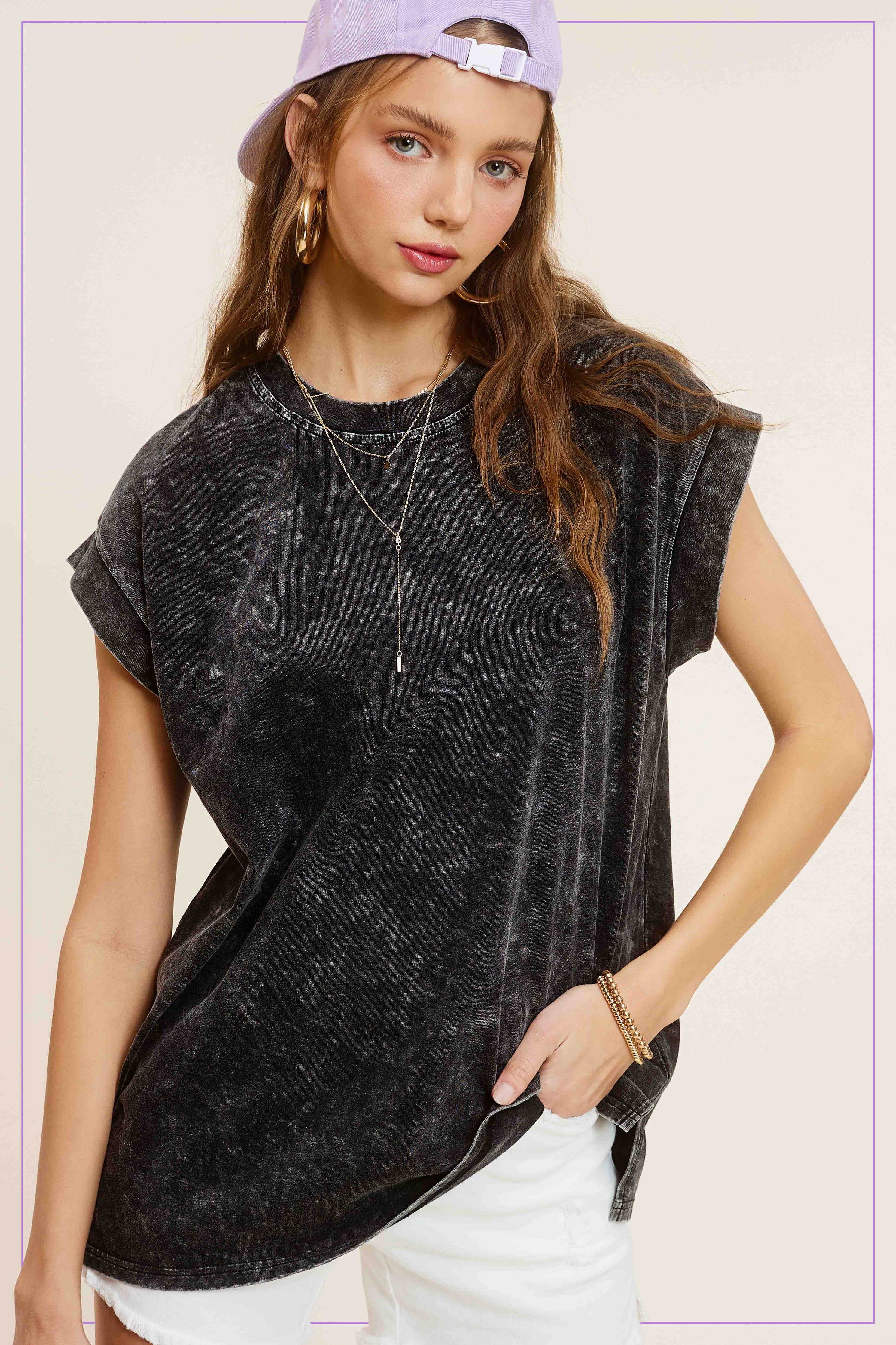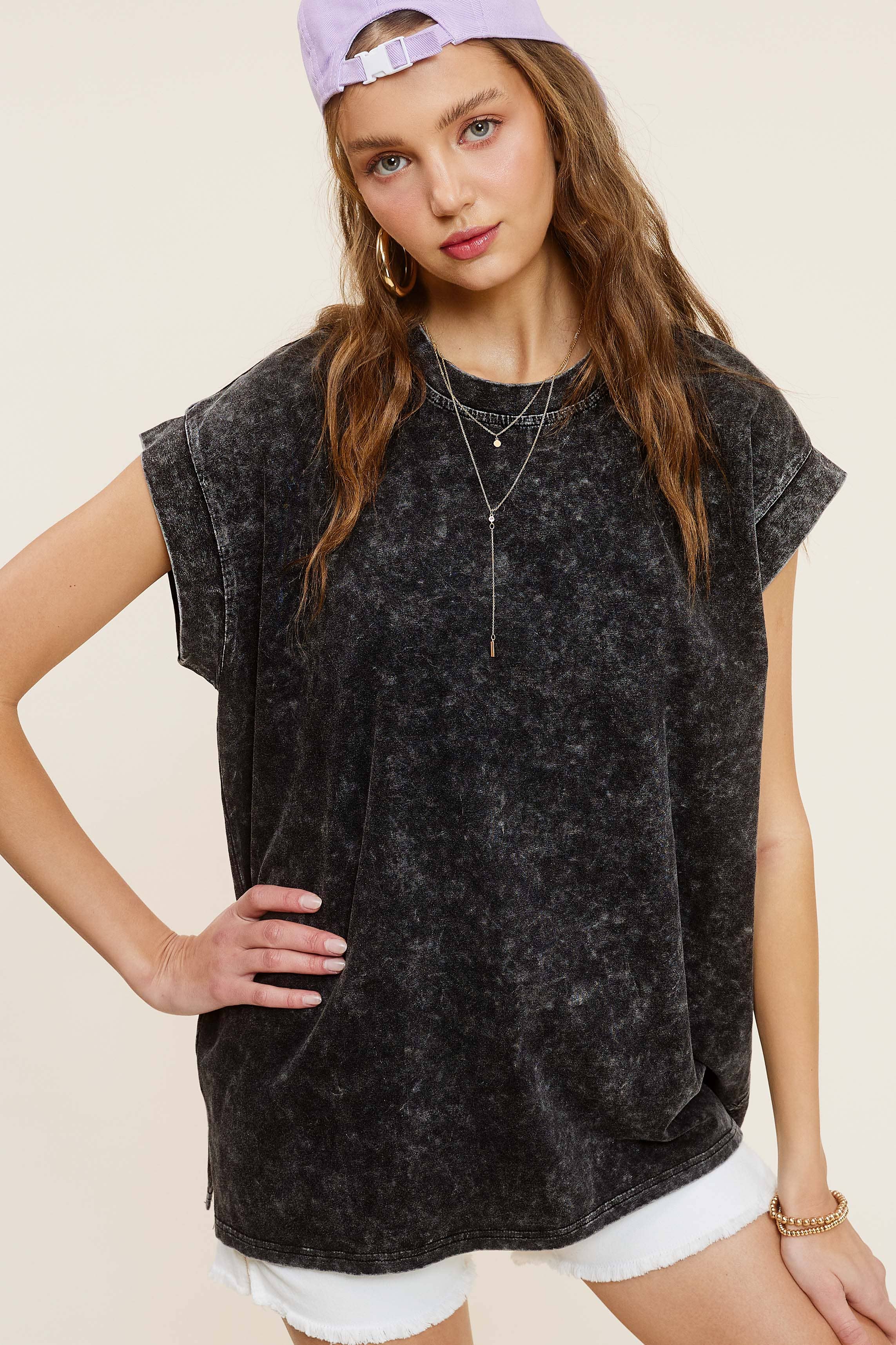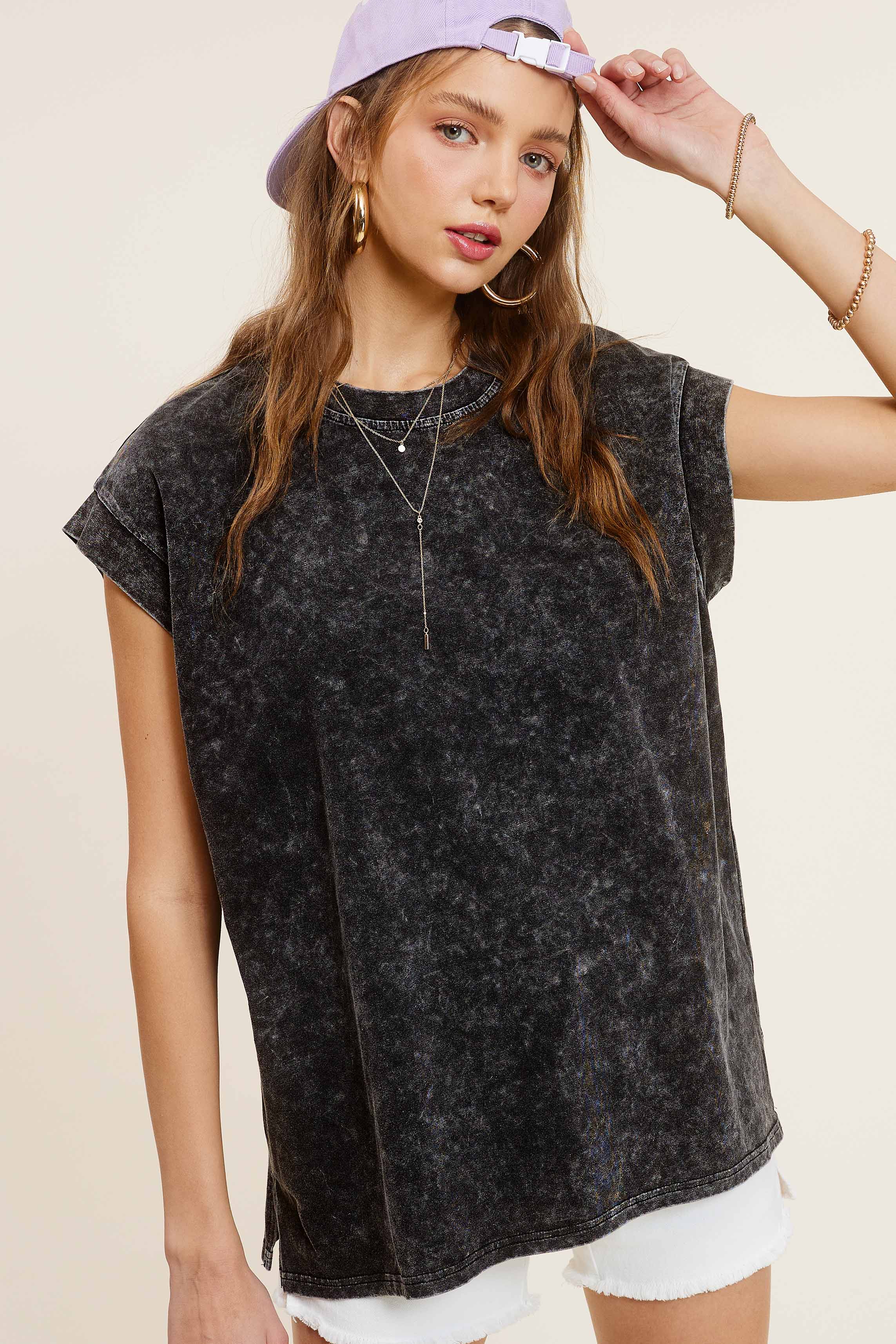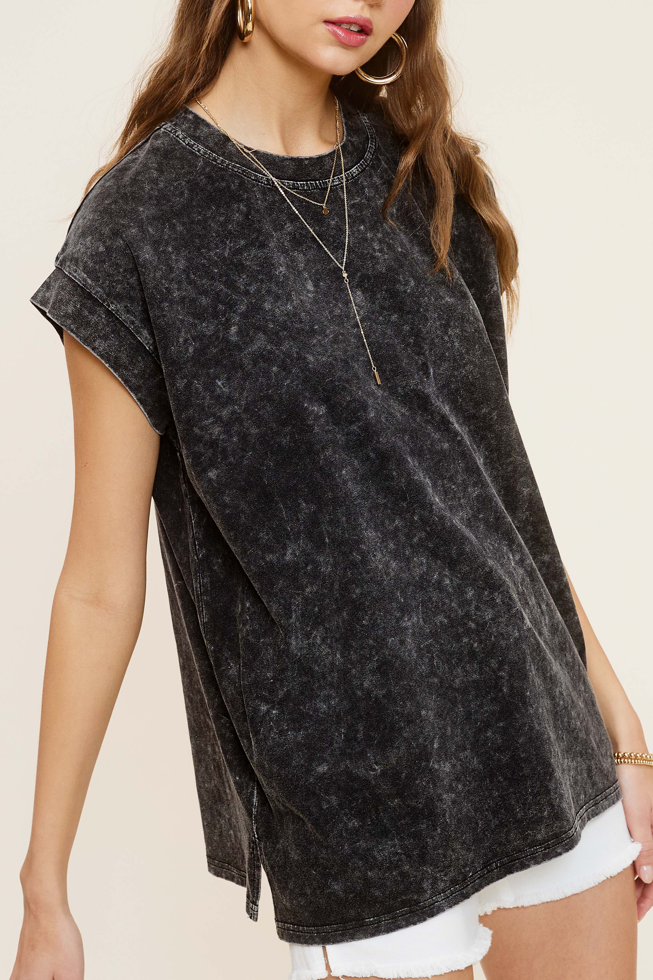 The mineral washed top is you absolutely need from our basic top collection, featured in a cool cotton fabrication and slouchy, relaxed fit with dropped shoulders and side-slit detailing. It's a wear-everywhere wardrobe staple. Perfect with your favorite jeans or effortless layered with loungewear, you'll be reaching for this top with every outfit.