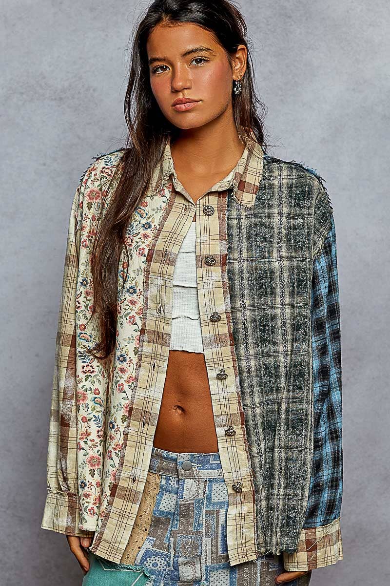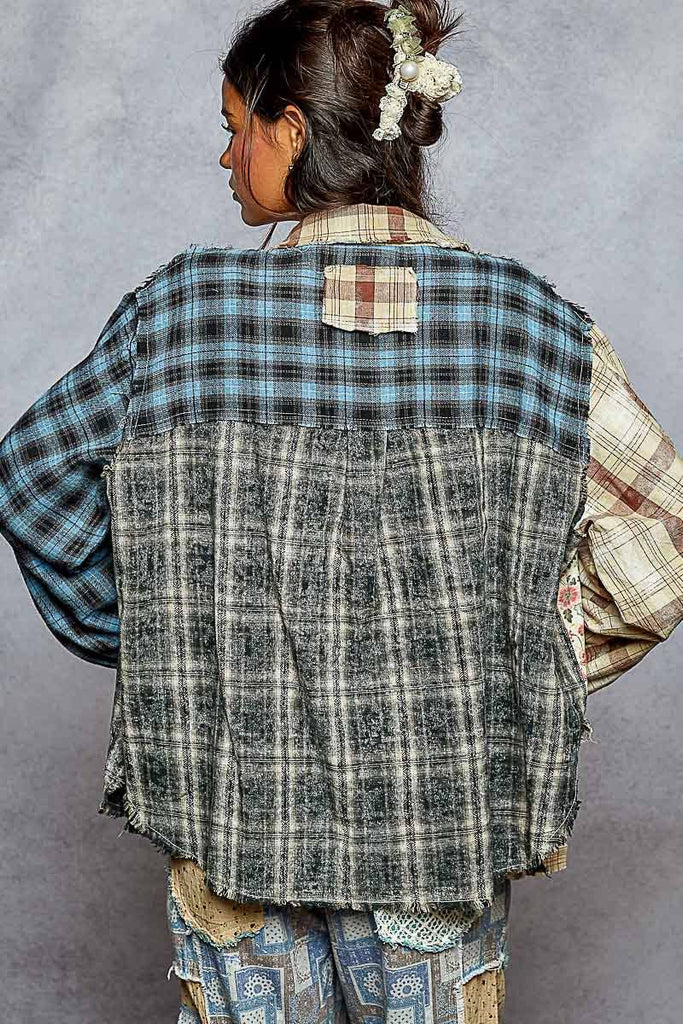 Designed in balloon sleeve oversized fit shirt in plaid.