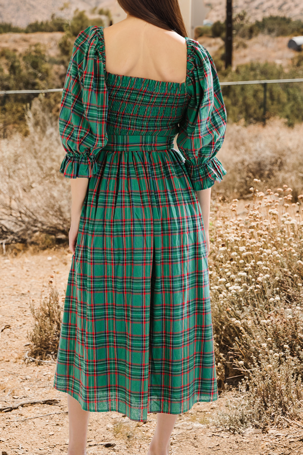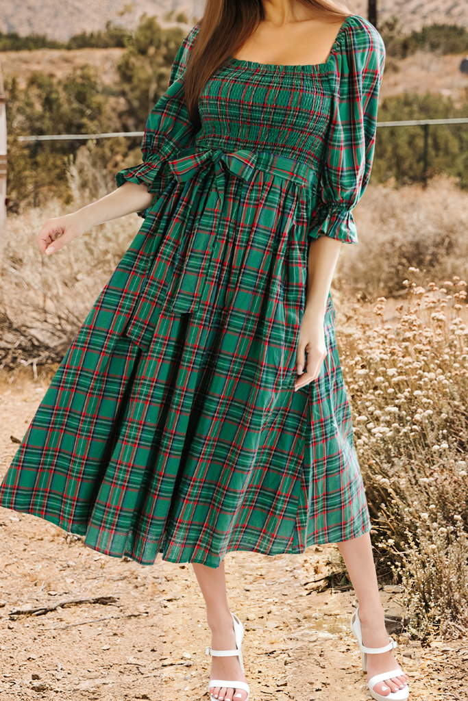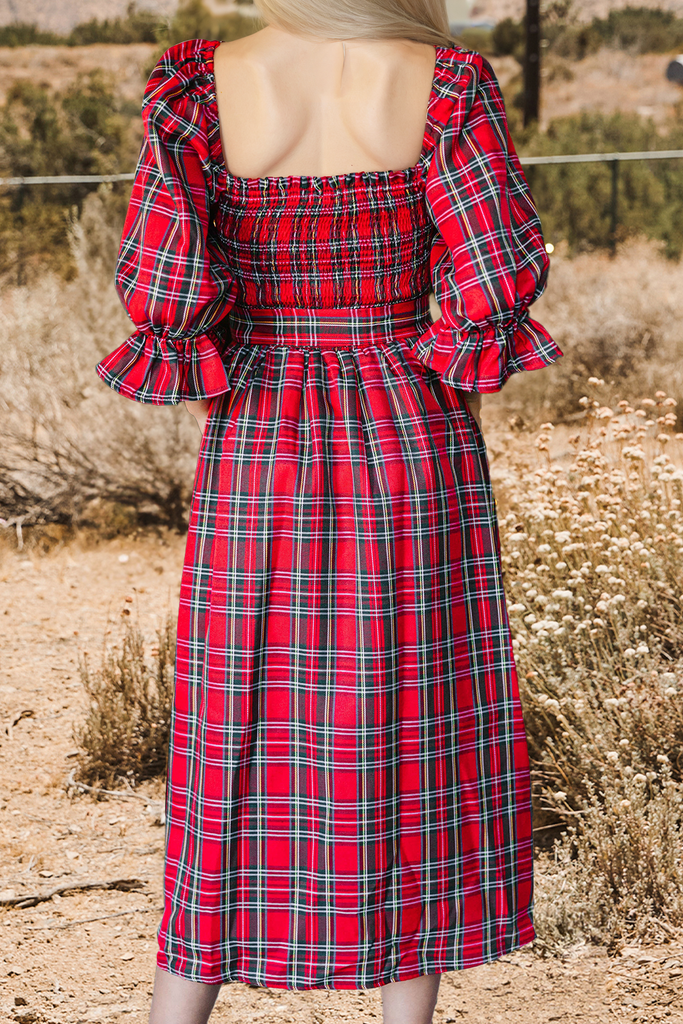 Christmas Plaid Puff Sleeve
