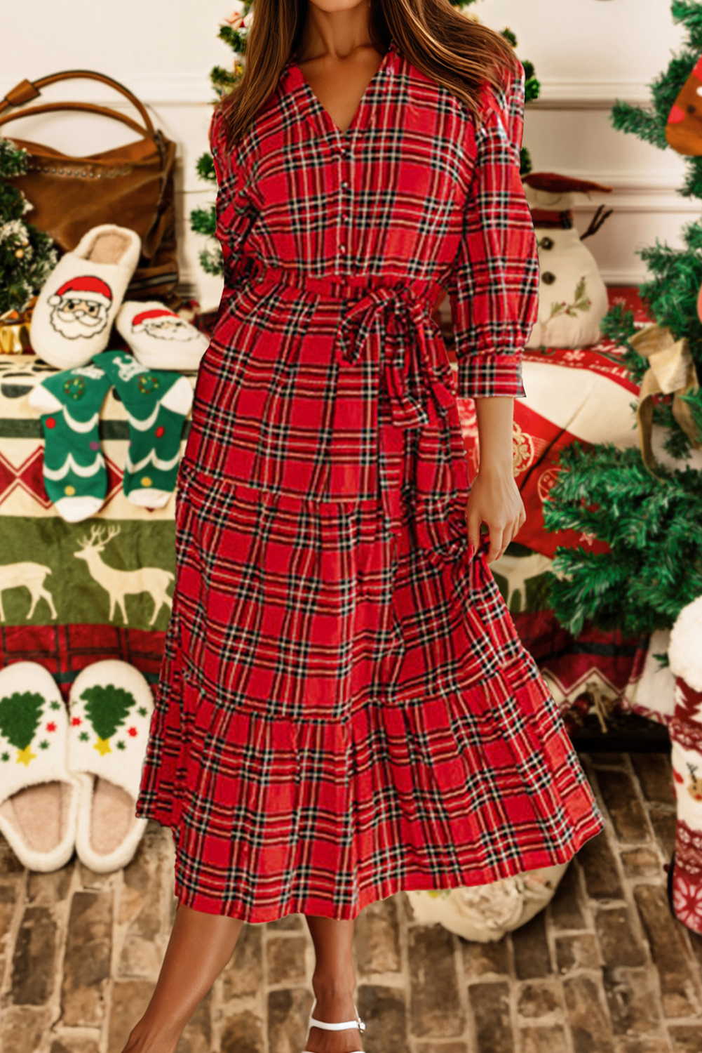 V-neckline and 3/4 sleeves offer a flattering, elegant look.