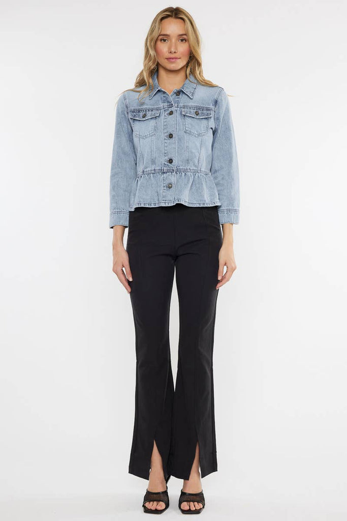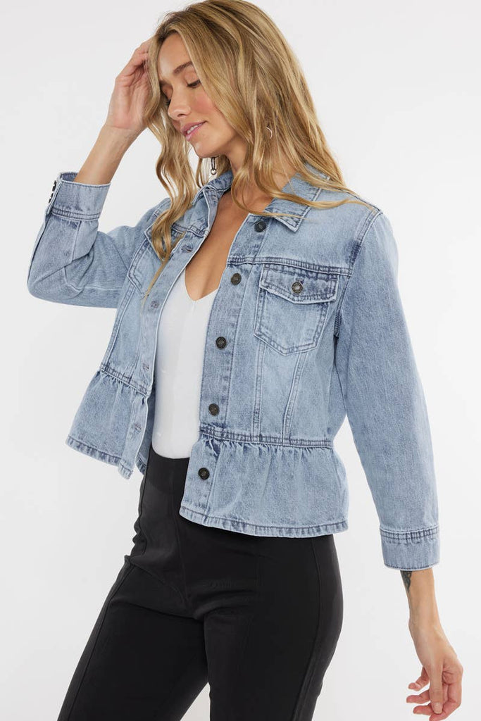 CLASSIC FIT PEPLUM DENIM JACKET LIGHT STONE WASH RIGID 21" LENGTH IN SIZE M 100% COTTON