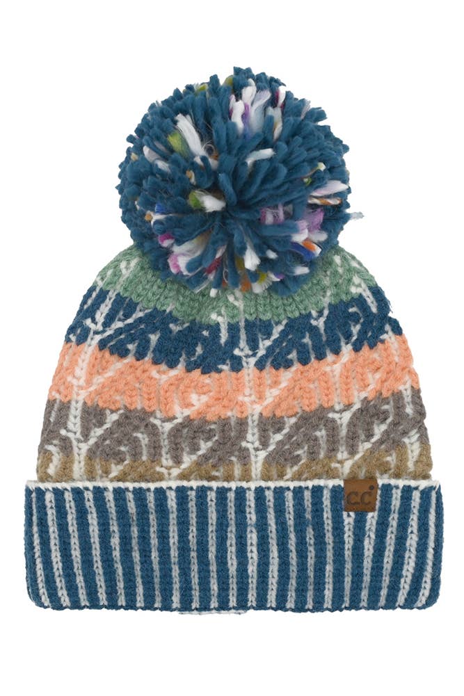 C.C Cable Multi Color Block Yarn Pom Beanie