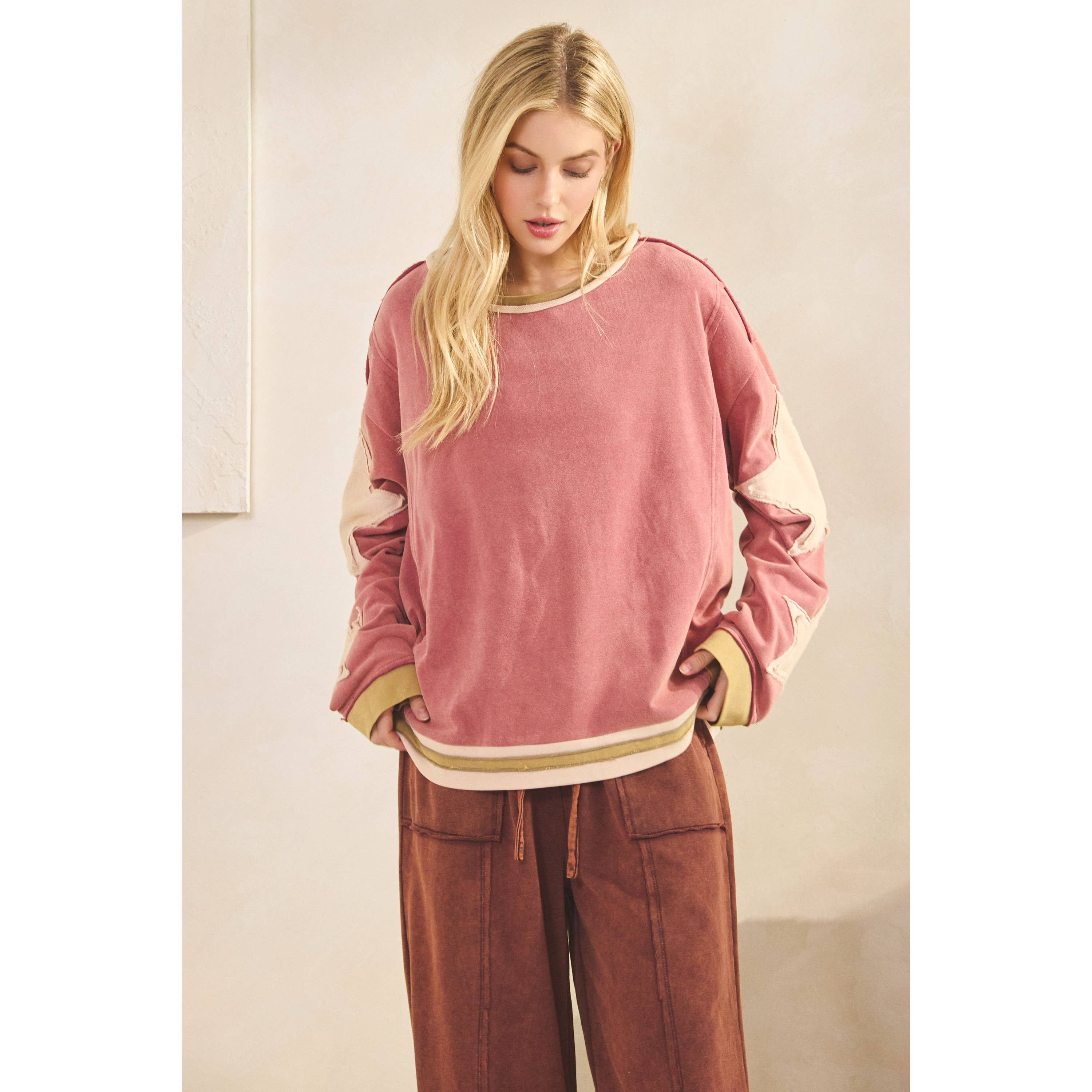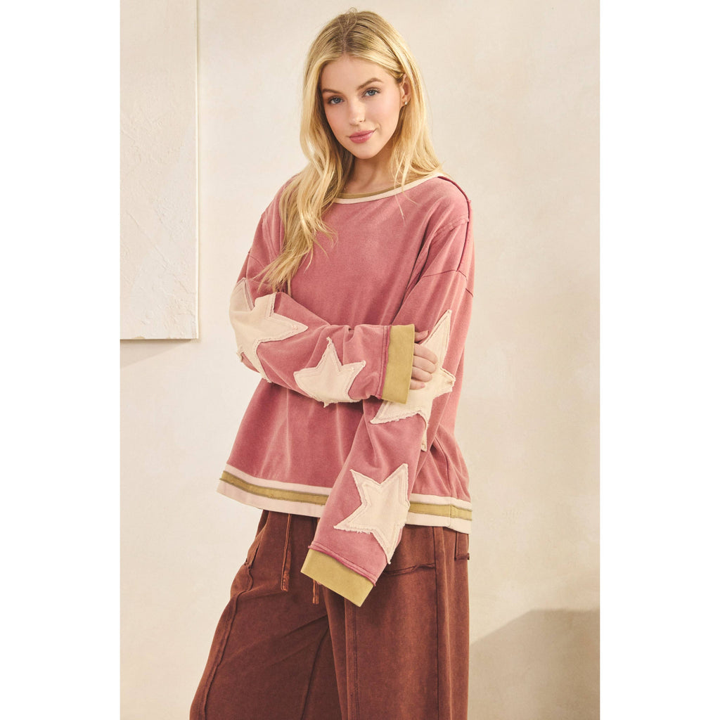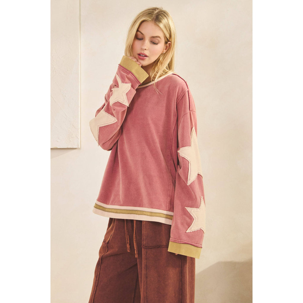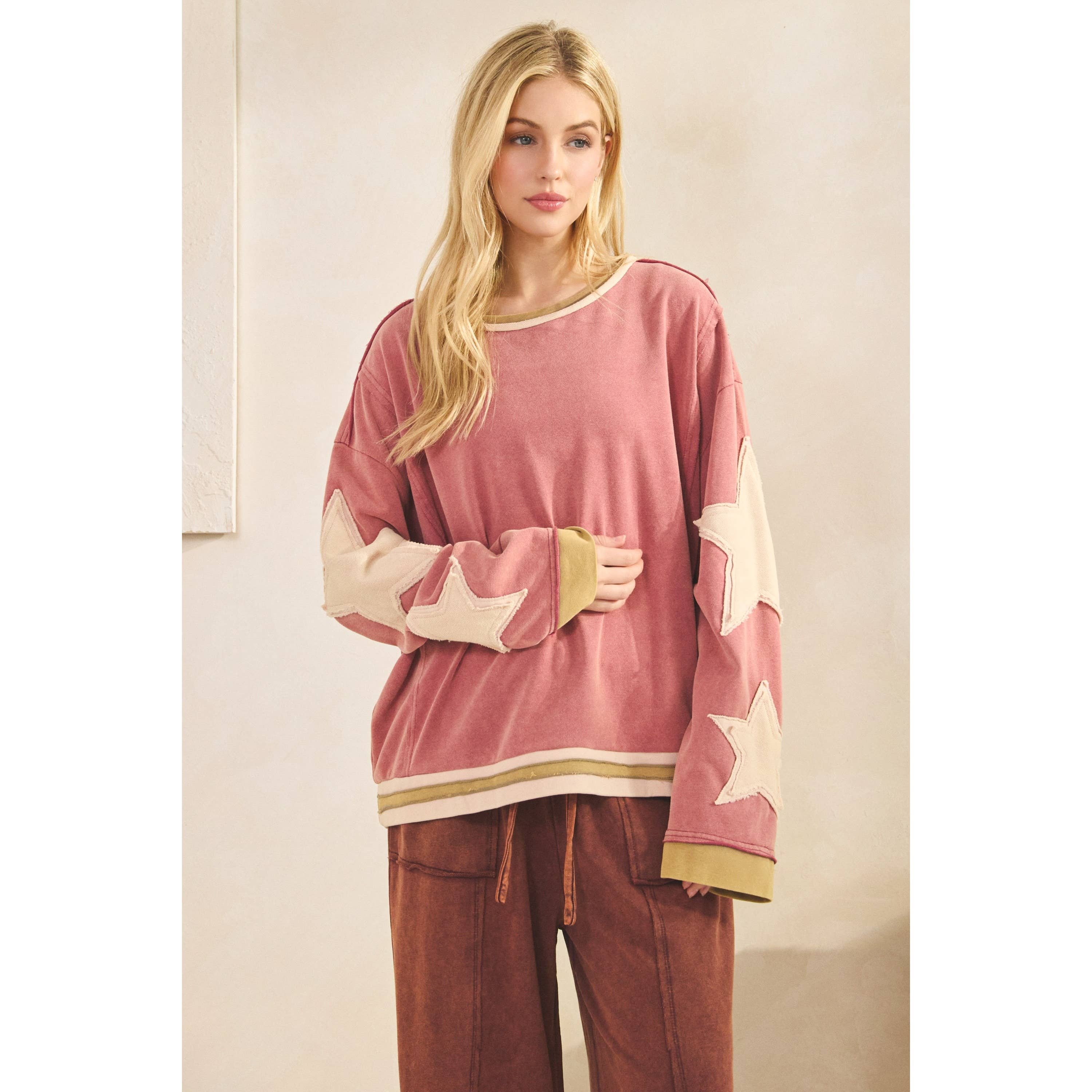 Add a pop of vibrant color to your wardrobe with our Vintage Star Patch Pullover. Crafted in a beautiful magenta pink hue, this cozy knit sweater is perfect for adding a touch of retro style to any outfit. Upgrade your sweater game and stay warm in style!