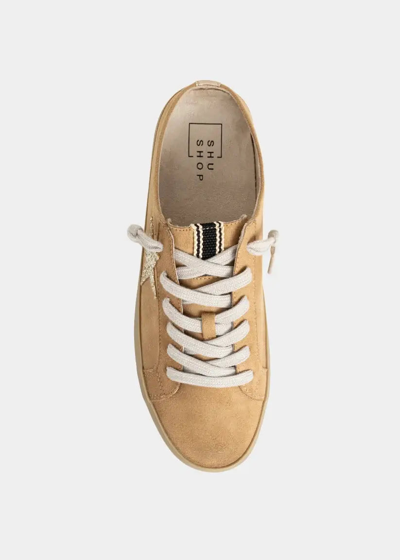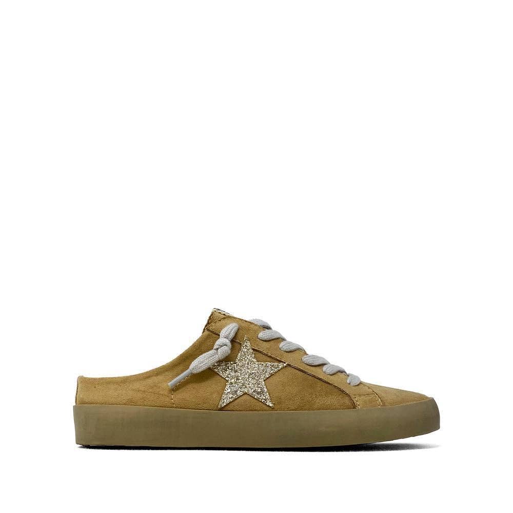 Go soft. The POLKA Beige Suede mule is the perfect blend of laid-back and luxe, with its warm-toned suede upper and glitter-dusted star patch. The classic off-white laces and pre-worn sole keep it easy and cool. Key Features Upper: Faux beige suede Star Detail: Glitter-finish star in gold. Insole: Cushioned and breathable. Outsole: Vintage-style rubber sole. Fit: Backless mule silhouette.