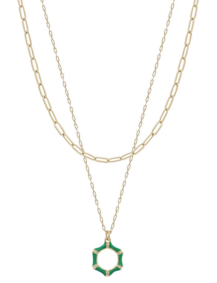 Introducing the BASH GREEN, a stunning addition to Meghan Browne Style's collection. This captivating pendant/charm necklace is designed with an adjustable 16-18in chain, offering a perfect fit for any occasion. Meghan's blend of energy and sense of fashion shine through in this piece, making it a must-have for anyone seeking to add a unique touch to their wardrobe. This piece embodies the essence of Meghan Browne Style – fresh, on-trend, and versatile. Whether you're dressing up for a special event or adding a touch of elegance to your everyday attire, the BASH GREEN necklace is a timeless choice.
