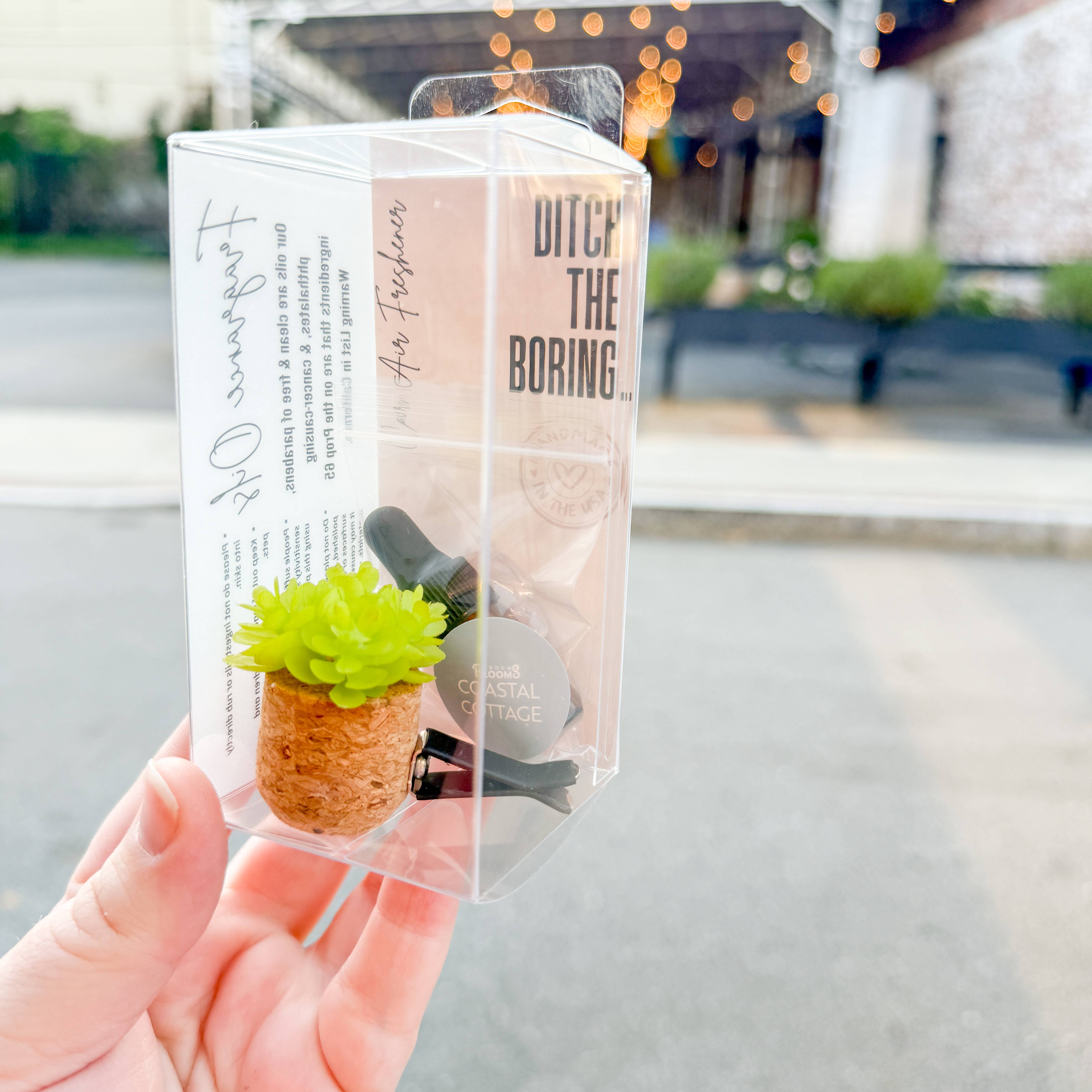 One of our owners invented these adorable, reusable plant diffusers as an alternative to traditional car air fresheners that contain chemicals that can be harmful to breathe in. She often got headaches with other air freshener options, plus they were all the same boring plastic design. So, the plant car vent diffusers were born!