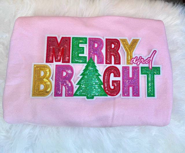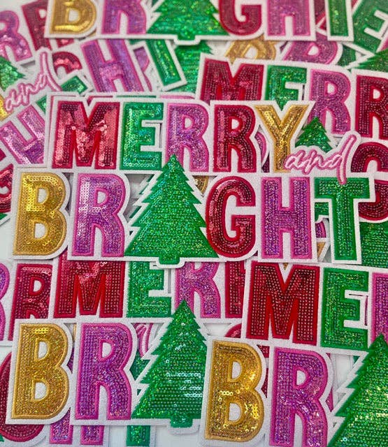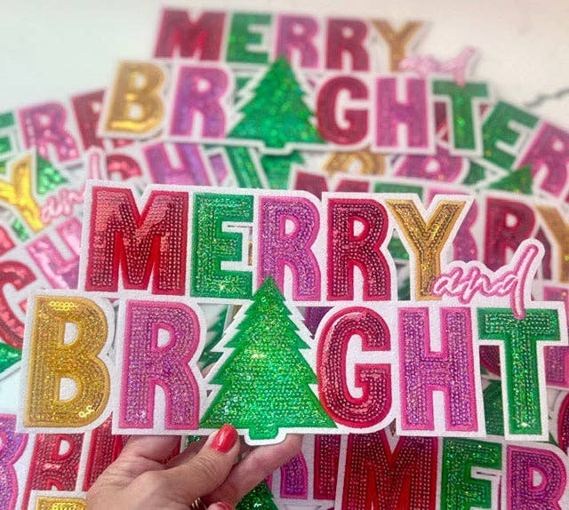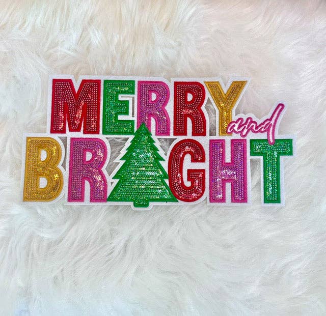 Sequin Merry and Bright Patch, 11 inch patch, Christmas Patch, Iron On Patch, Holiday Patch, DIY Patch, Sweatshirt Patch