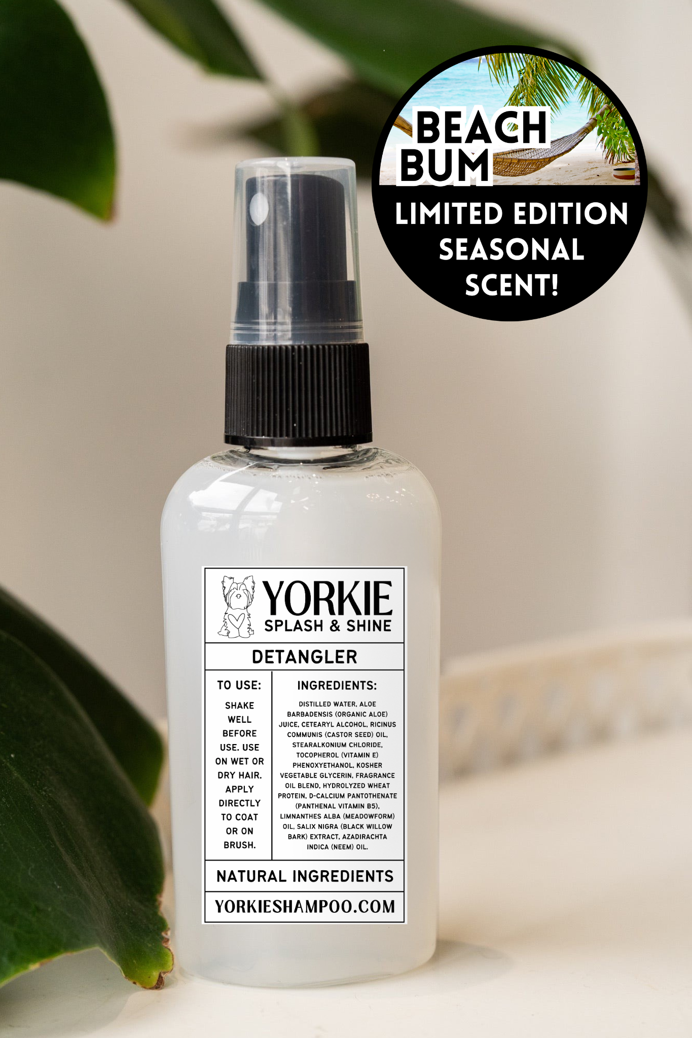 Limited Edition Yorkie Sheen DETANGLER - Beach Bum - 2oz is backordered and will ship as soon as it is back in stock.