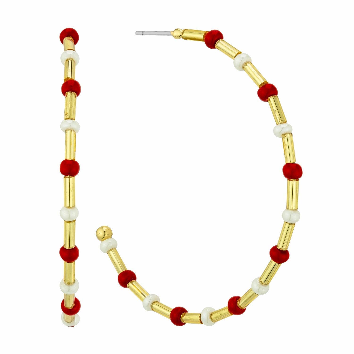 2in GOLD TUBE WITH RED AND WHITE CRYSTALS STATIONED HOOP EARRING